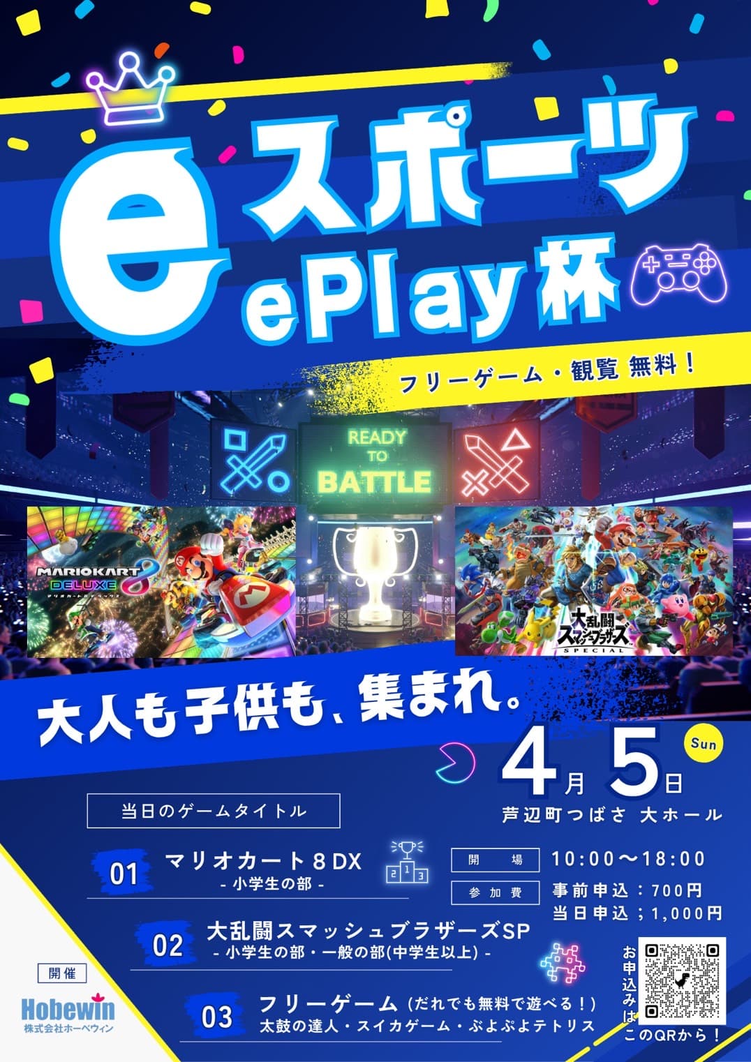 10:00〜18:00芦辺町クオリティライフセンターつばさフリーゲームコーナー・観覧は無料、大会出場者は参加費700円