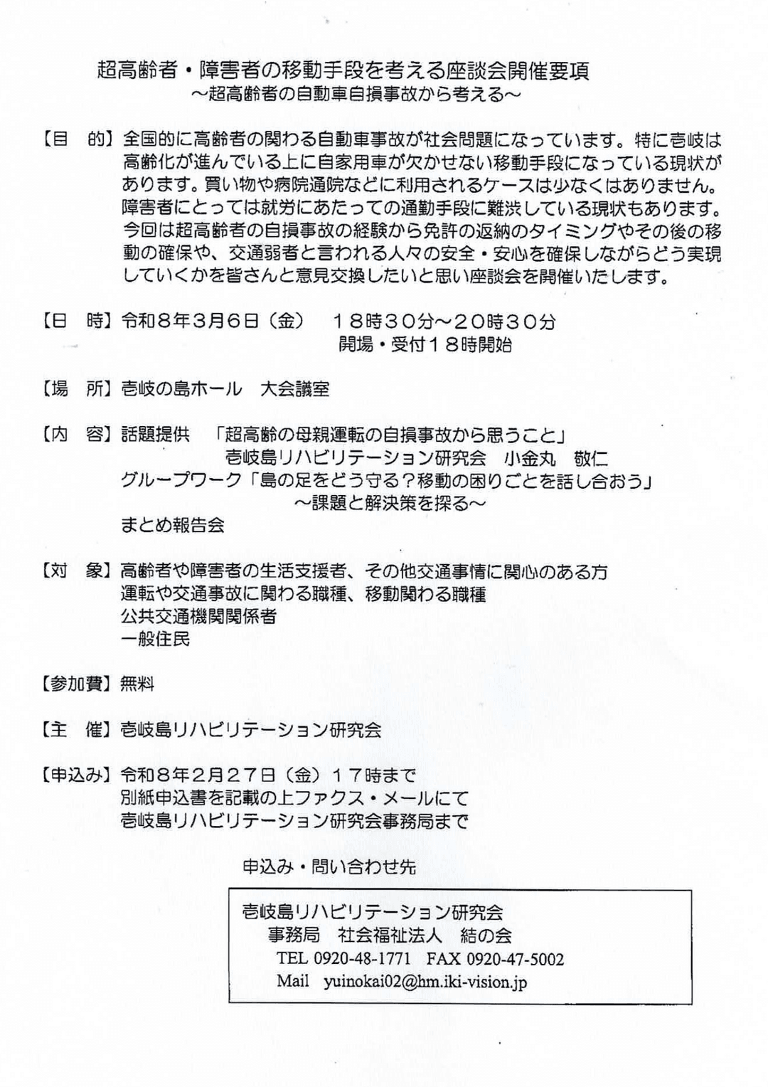 超高齢者・障害者の移動手段を考える座談会開催要項~超高齢者の自動車自損事故から考える~