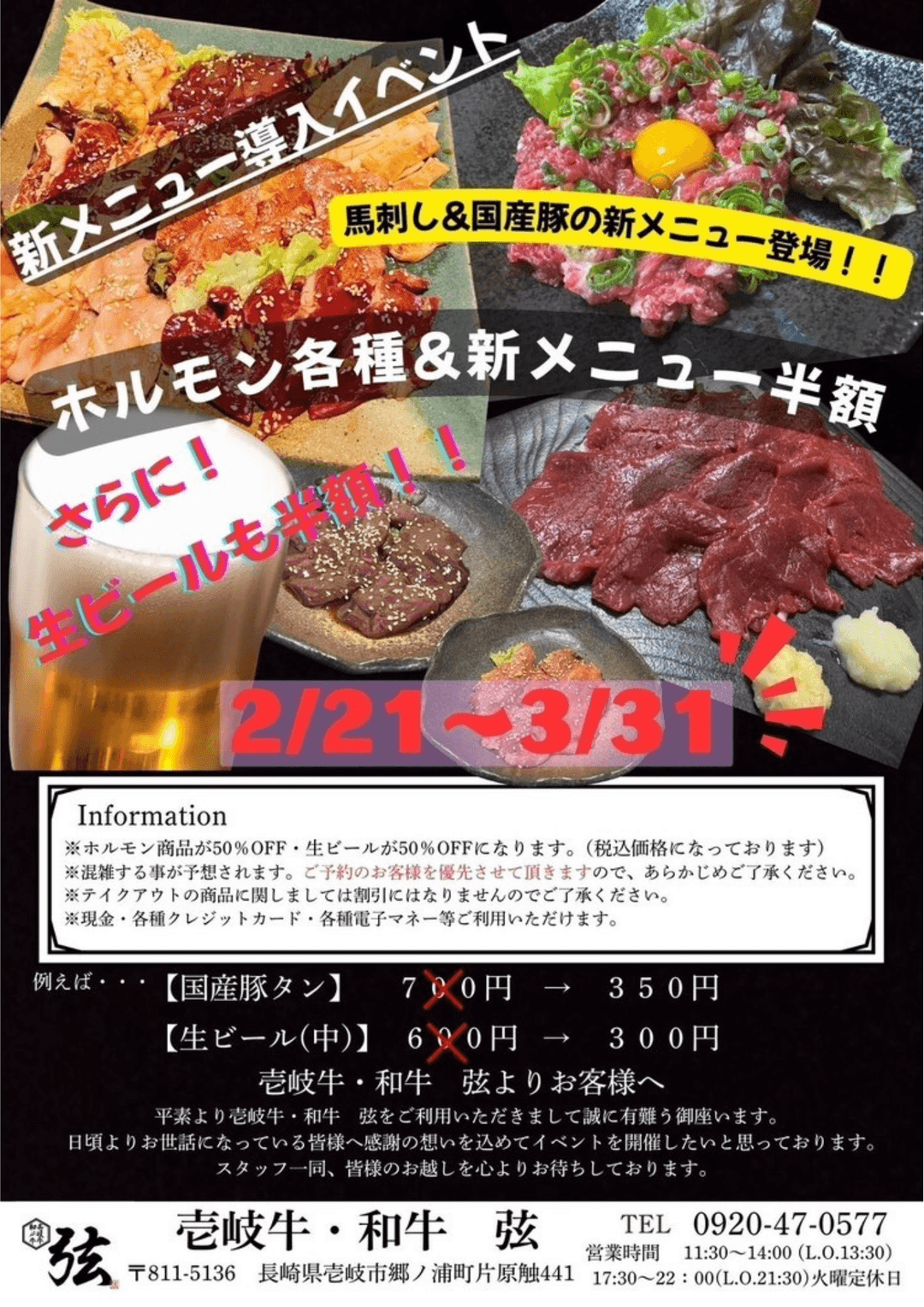 新メニュー導入イベント ホルモン各種&新メニュー半額